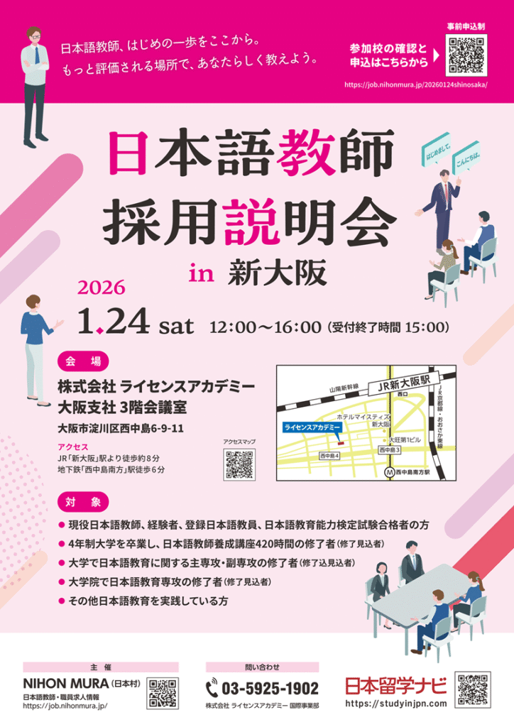 2026年1月24日(土):日本語教師採用説明会 in 新大阪